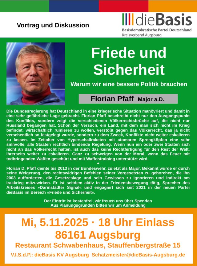 —— 5. November 2025 18:00 Uhr im Restaurant Schwabenhaus, Stauffenbergstr. 15, 86161 Augsburg