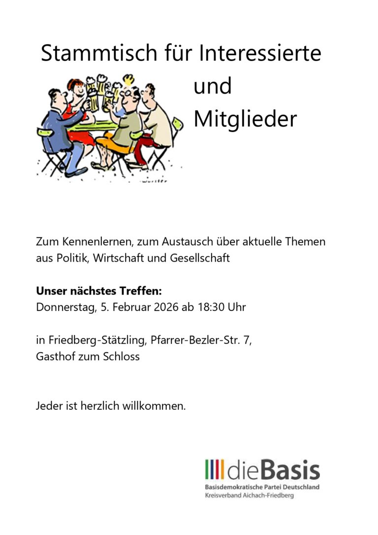 Nächster Stammtisch-Termin: Donnerstag, 5. Februar 2026, Gasthof zum Schloss (oder Schlossgaststätte), Pfarrer-Bezler-Str. 7, 86316 Friedberg/Stätzling